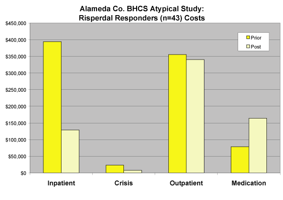 (inpatient, ER, outpatient), medication costs, and overall costs were